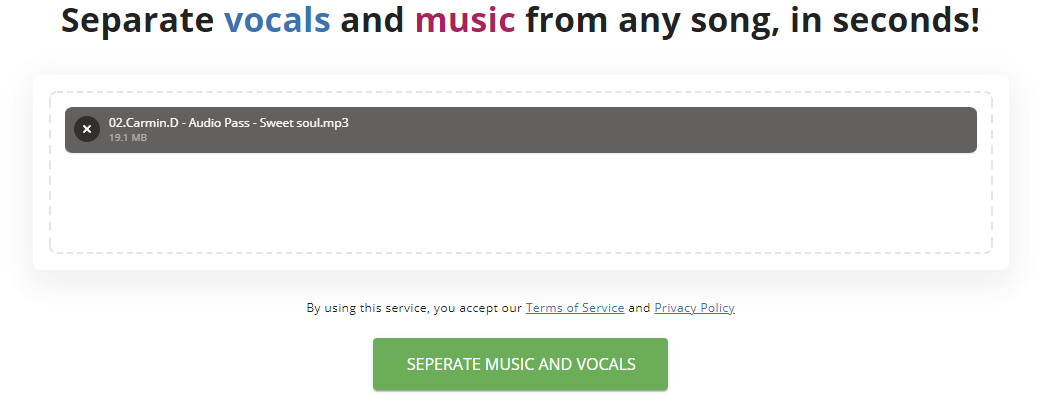 Pour utiliser Vocali.se, il suffit d’aller sur le site du projet (Vocali.se), envoyer le titre musical duquel vous souhaitez récupérer la voix, vous cliquez sur « Seperate Music and Vocals », vous patientez un peu et ensuite vous allez vous retrouver avec deux fichiers MP3. Les fichiers que vous pourrez ainsi télécharger contiendront pour l’un, la voix et pour l’autre la musique seule autrement dit l’instrumental. Tous ceux et celles qui souhaitent faire des remix ou simplement créer de bons samples pour leurs morceaux vont adorer. N’oublions pas que c’est totalement gratuit !
